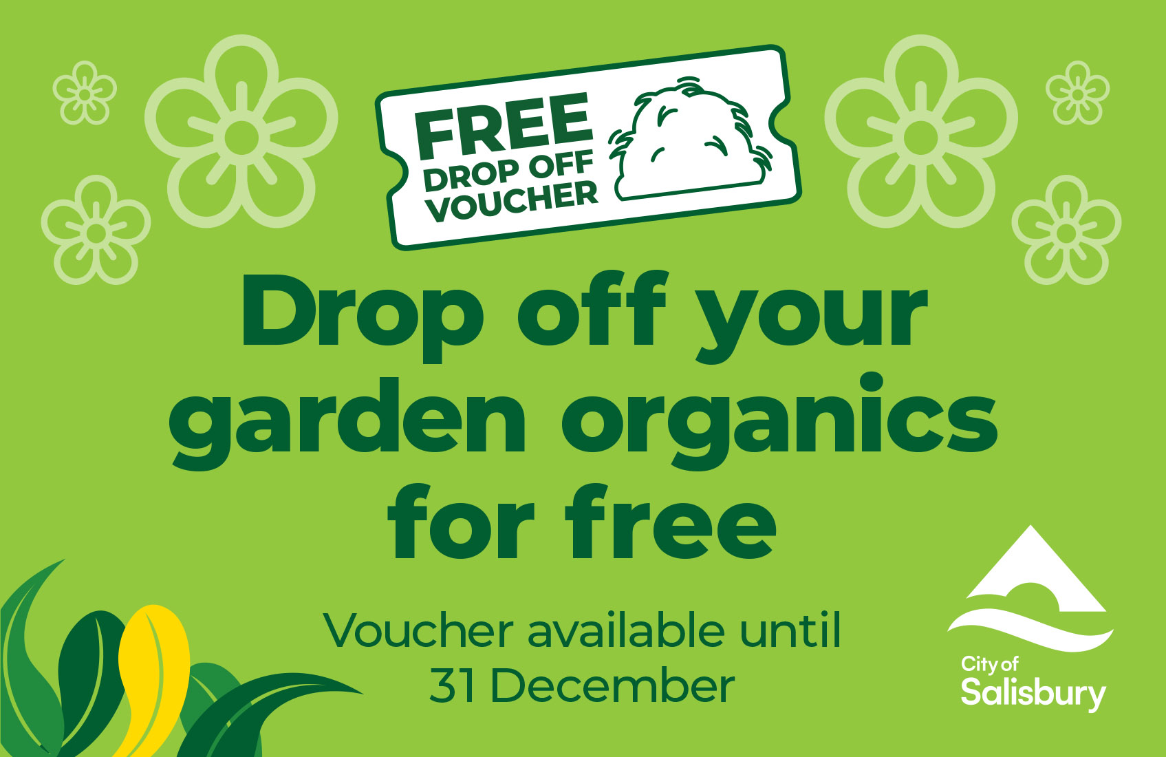 City of Salisbury residents (rateable premises only) will be able to request one (1) free garden organics drop-off per household to dispose of excess garden organic waste (also called ‘green ...