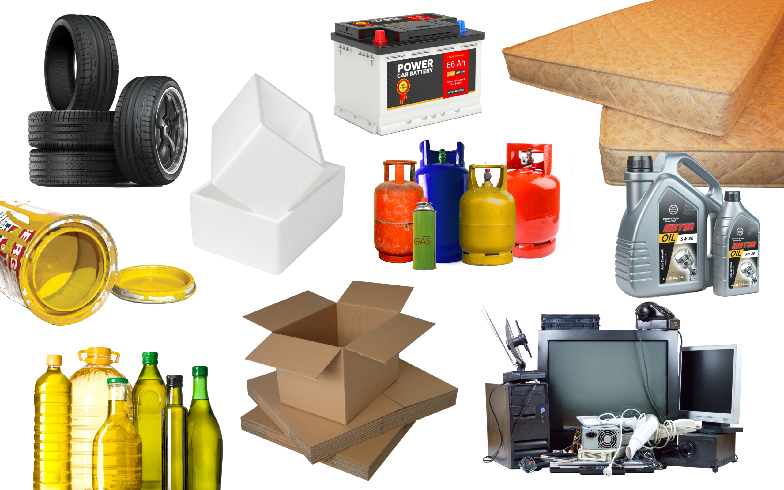 Many items that cannot be reused such as electronic waste, car batteries and waste oil (including cooking oil) can be recycled for reuse in other products by placing them in one of the designated collection bays.